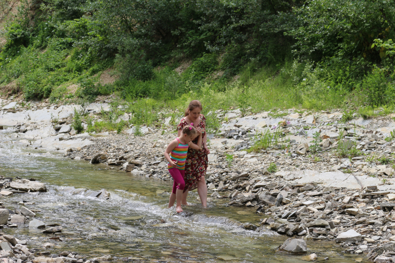 Но зато в этом году сбылась моя давняя мечта. Два года подряд никак не получалась эта поездка, но наконец звезды сошлись, и мы поехали. Путь наш лежал в Кабардинку, поехали по Новороссийской трассе. Навигатор показывал, что можно срезать через горы, поехали. По дороге нашли смешную речку))