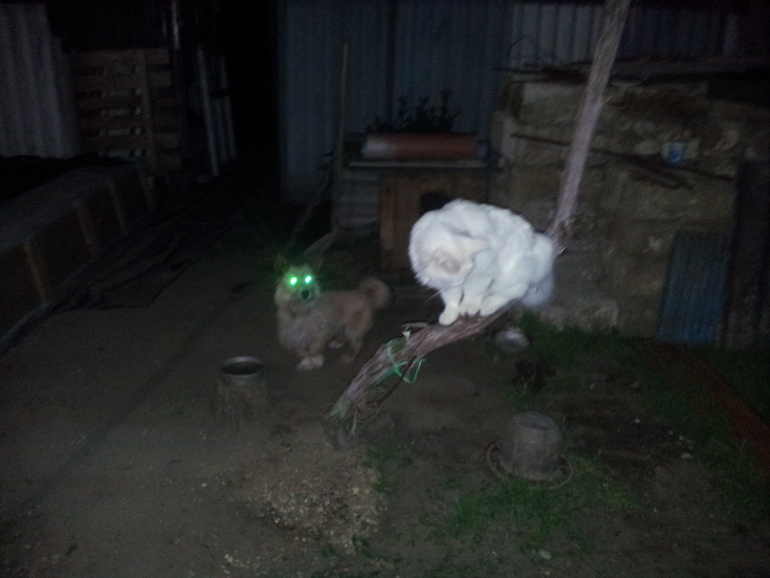 А у мамы три собаки и был один белый котик с разными глазами. Вот, на фото ниже бедному котику больше негде посидеть, кроме как на винограде)