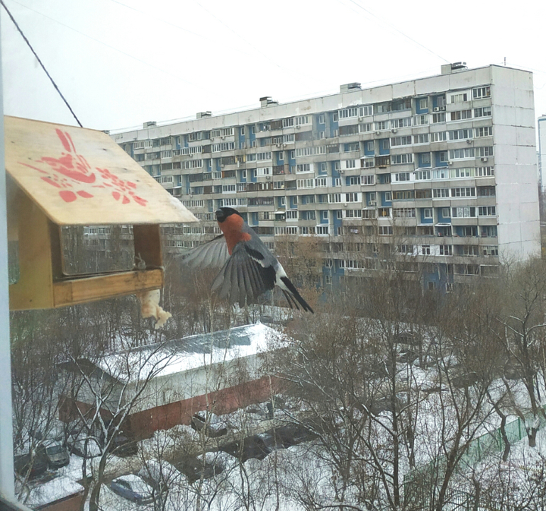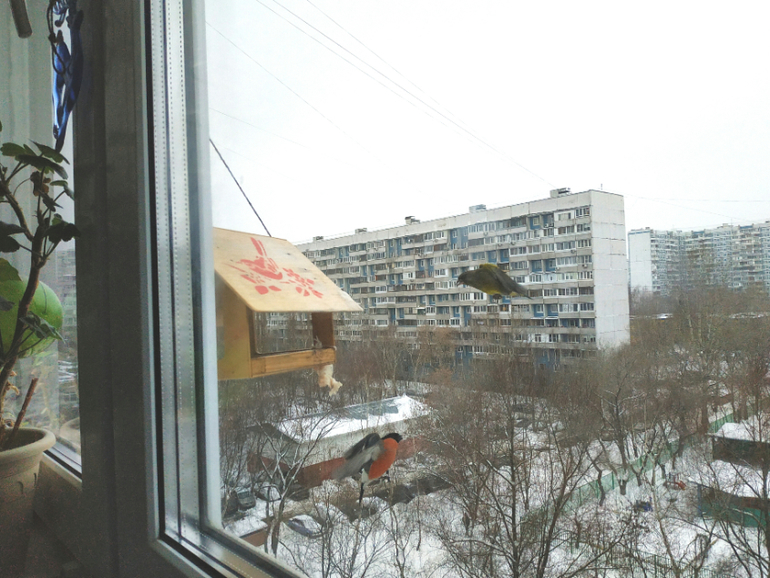 Как же я мечтаю о такой кормушке за окном. Но мы на 19 этаже, к нам мухи то неохотно залетают (((