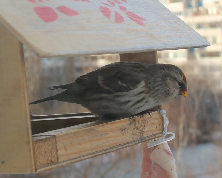 За окном у нас висит кормушка, весьма популярная в местных кругах.