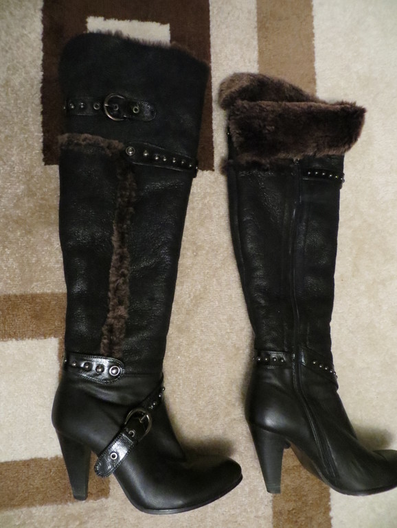Продам очень красивые сапоги, материал дубленка, натуральный мех. Одеты пару раз минут на 10, не могу на таких каблуках все-таки ходить((