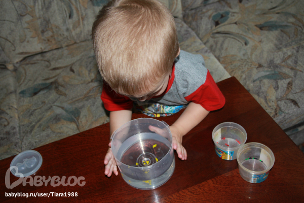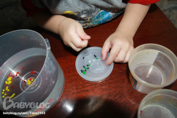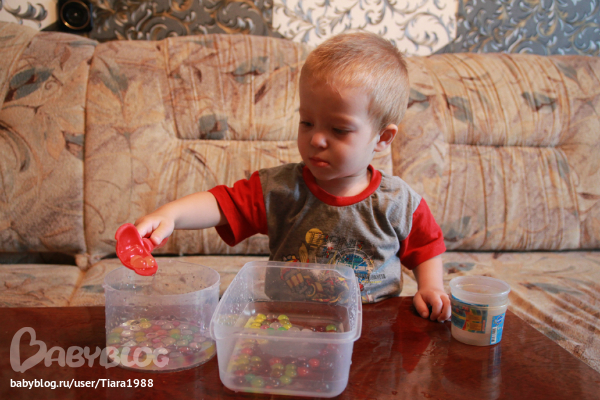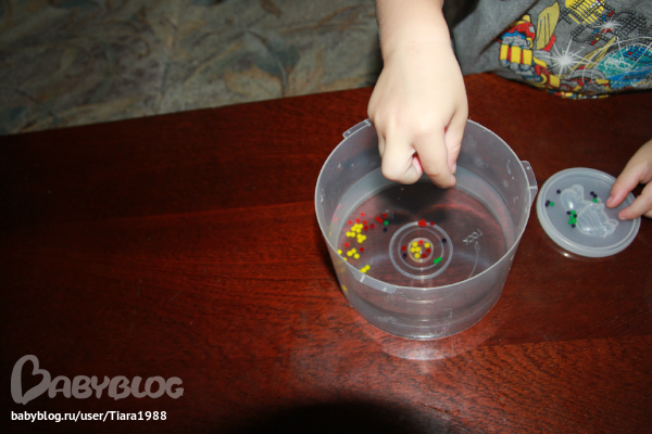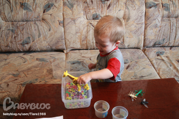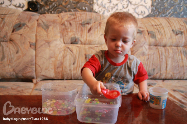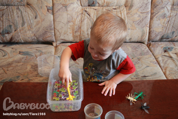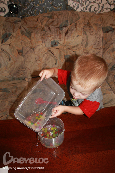 Так как у нас было первое знакомство с гидрогелем, я много заданий не придумывала! Перекладывали из одной баночки в другую!