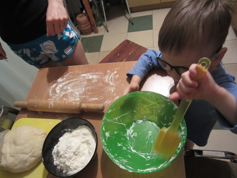 Димка тоже помогал как мог: тщательно месил тесто и вылизывал миску от крема для торта).