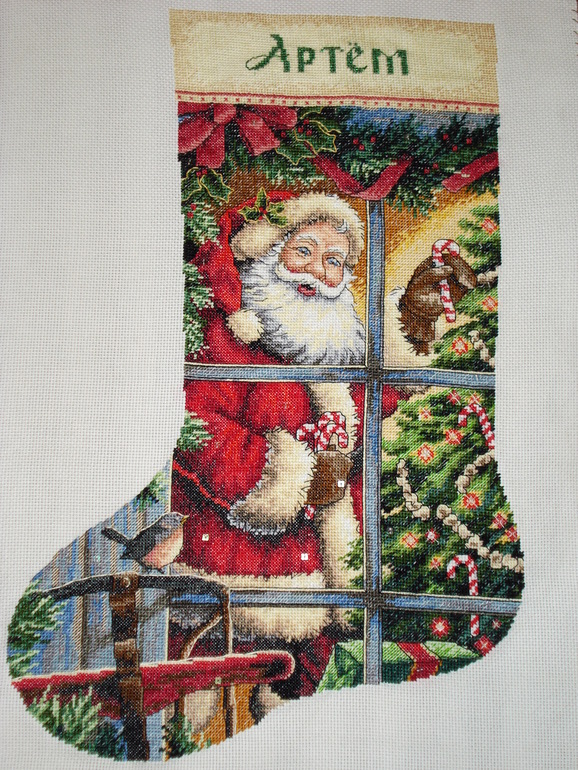 Решила я в этом году, что созрела для новогодних носочков. Захотелось создать немного "сказки" для членов семьи. Начала с носочка для сыночка. Остановилась конечно на дизайне от Дим. И после двух месяцев стараний первый готов. Осталось прикупить ткань и сшить.