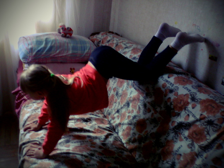 Ей ведь уже 5. Вроде взрослая - по регламенту... но на деле - дитя дитём)))) Допросила Опросила с пристрастием. Во время допроса опроса стояла чуть ли не на голове - всякие трюки акробатические.))) Вроде: