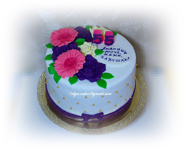 И вот этот тортик тоже очень быстро был изготовлен ещё в октябре, выкладываю как бесплатное приложение к теме Цветы. Заказывали мне этот дизайн уже в третий или четвертый раз. Из раздела: "Торт был нужен еще вчера!"