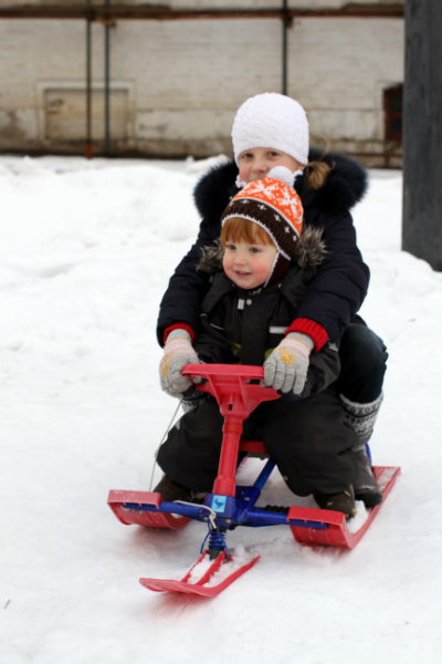 Снегокат сегодня прошёл боевое крещение. Света просилась на горку, как только нам его подарили. И ничего, что снега на асфальте не было))Мы доехали таки до горки, а там снега хоть отбавляй))