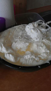 еще я сделала 2 коржа из безе(стандартный )выпечь примерно 35-45 мин. первые 20 мин.не открывать, потом снизить температуру с 200 до 150, пусть подсушивается.безе получается не сухим.