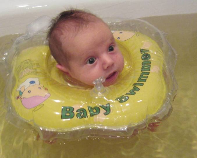 Вчера впервые попробовали плавать в большой ванной с кругом. Я очень переживала, что Геночка испугается, что не даст одеть этот круг.