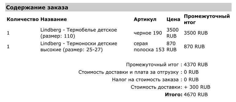 Мне было необходимо заказать ребенку термобелье Lindberg. И как обычно, надо быстро. Безусловно, я сделала бы это через babyshop, если бы не проворонила там наш размер.