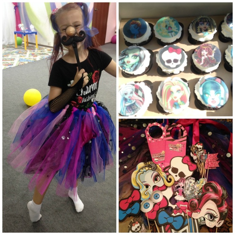 В этот году день рождения отмечали в стиле Монстров Хай, у нее теперь на них мания - даже рюкзак просит в их стилистике.