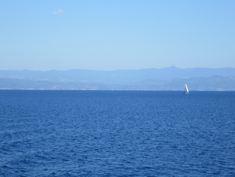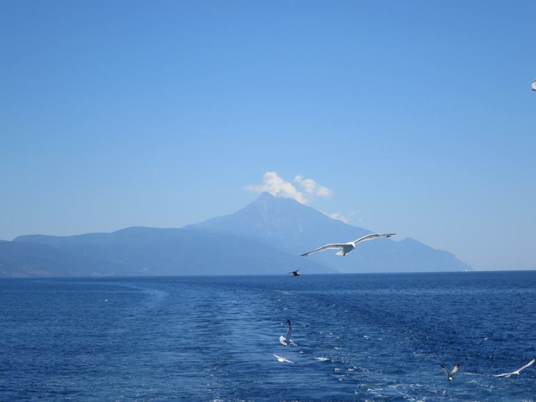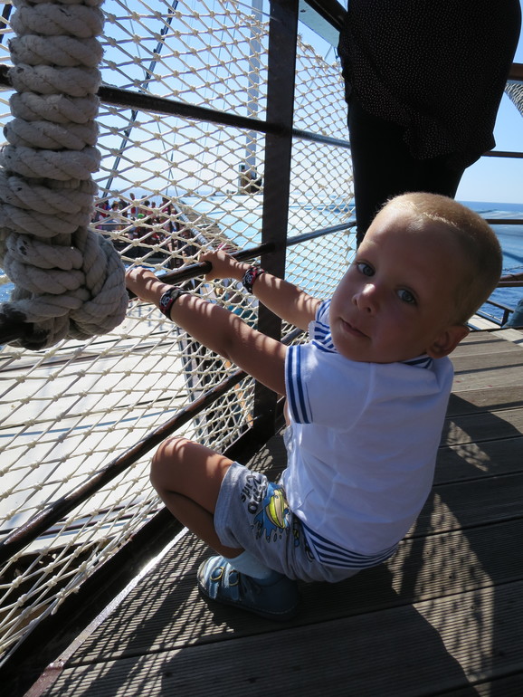 Назад плыли быстрее, был греческий вечер - пляски и музыка. Тему с боем удалось уложить на нижней палубе, пляски нас не вдохновили особо, так что по очереди сторожили Тему и ходили любоваться на чаек и море.