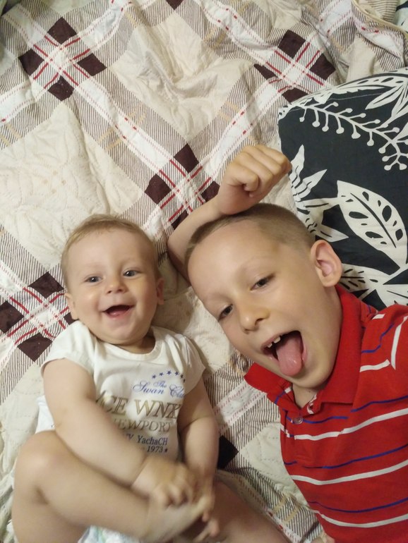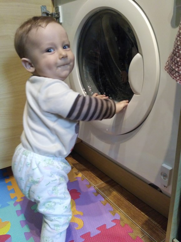 Кушает плохо, прикорм я имею ввиду. Одна врач сказала, что мне надо его больше кормить. А как, если он ничего не ест. Каши чуток утром, причём не помогло аппетиту даже введение молочной и сладковатой, а я наивно думала, что он пресную не ест из-за вкуса.. Днем овощи и стала давать мясо, тоже без энтузиазма, то-ли жара так влияет, то-ли я не знаю что. Причём, то ест тыкву, например, то она же вызывает чуть ли не рвотный рефлекс, отсюда я не могу понять, какие овощи ему нравятся. Полдник его любимое время, я думаю, потому что через день я даю творожок, это единственный продукт, который он ест с удовольствием, даже фруктовые пюре ест не так, а тут сам открывает рот, вылизывает ложку, все бы так ел))) кусками давится, водой захлебывается, дур дом полный. Но хоть из поильника стал пить, видимо тоже жара заставила. Фрукты в ниблере ест, то хорошо, то не очень, огурец как-то так давали, мне кажется он больше чешет зубы, чем ест. Как и носиком поильника, в принципе... Молчит. Ну так что-то там слегка бухтит на своём, редко бывает день, когда весь день болтает дядядя папапа и что-то в таком духе, в остальные дни молчалив, но все так же улыбателен. Хочет везде. Добрался на балкон, который сейчас открыт, изучил все, что на нем стоит и лежит, доволен собой, думаю, что сожалеет, что не до всего пока способен добраться. Любовь с роботом пылесосом продолжается и растёт. Готов сесть на него и кататься, мне кажется. А так мучает его, включает, догоняет, если отнести в другую комнату и включить, то слышит, бросает все дела и мчит туда на всех своих четвереньковых парах. Вторая любовь конечно же стиральная машина)))