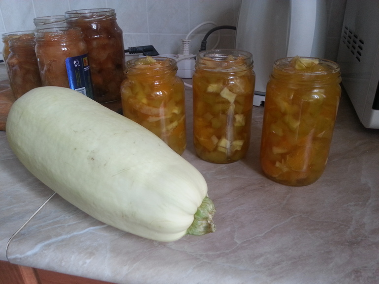 На заднем плане тоже из кабачков БЕЗ сахара с яблоками, лимоном и медом