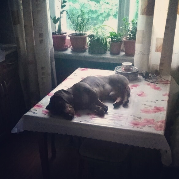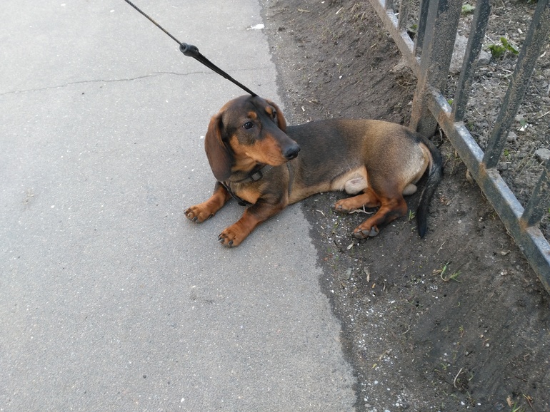 Сидней_таксаКирилл не устает играть с Сиднеем, Катя выгуливает по 2 часа вечером в компании молодежи, Леша наглаживает пока никто не видит воспитывает, я просто наслаждаюсь этим маленьким членом семьи.