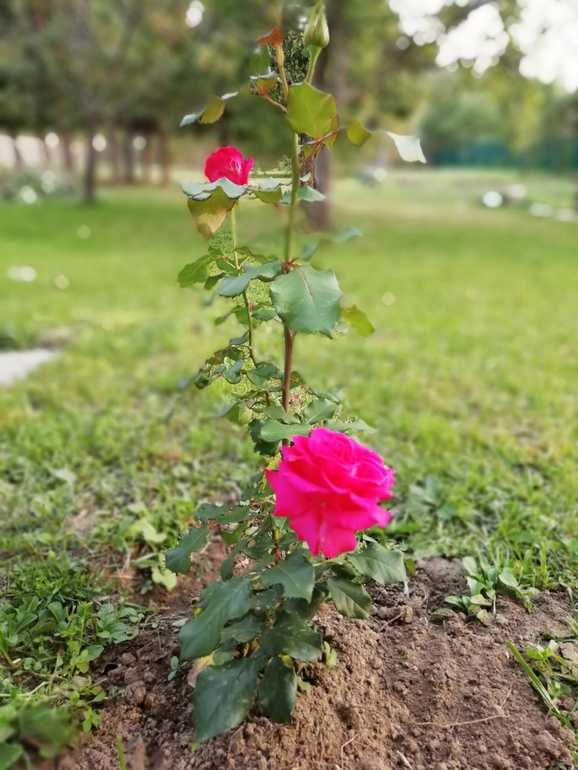 И закопать розы (их две). Вот такой высоты нужно обрезать?