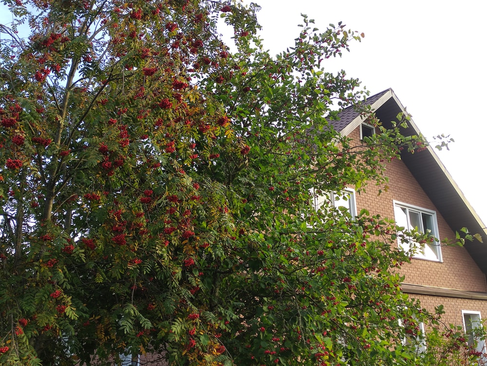 Рябина и боярышник очень красиво в сентябре с зелёной листвой.