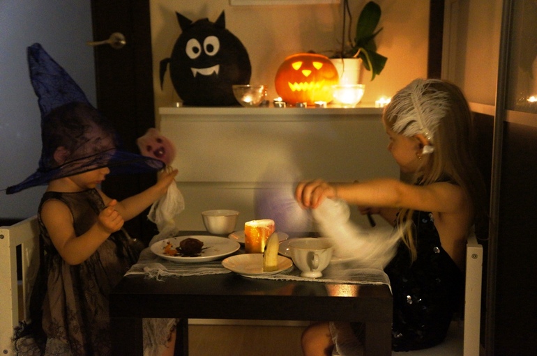 Зажгла свечи, одела всех в черное и вуаля, домашний Хэллоуин. А на ночь сказочка про сам праздник!
