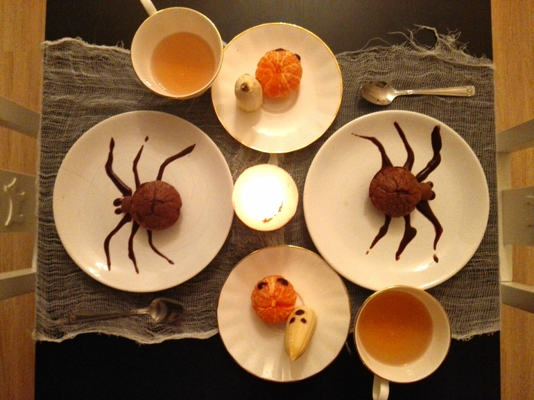 Для сервировки детского столика положила марлю, как буд-то это паутина)))
