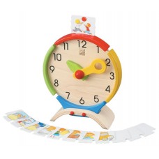 Увлекательная развивающая игрушка часы поможет ребенку не только познакомиться с понятием времени, но и научит сопоставлять свой ежедневный распорядок с конкретным периодом суток. Деревянная игрушка имеет форму круглых часов и дополнена 9 карточками с изображением привычных для малыша дел: утренних процедур, просмотра мультфильмов, прочего. В наборе также есть три пустые карточки, на которых ребенок вместе с родителями может изобразить свои увлечения и любимые игры. С помощью таких «говорящих» часов ребенок быстро научится определять время по стрелкам часов, а также разовьет логическое мышление, творческие потенциал, познакомится с понятиями распорядка и дисциплины.