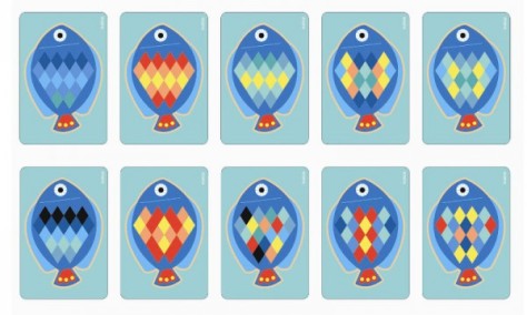 В комплекте деревянная основа в виде рыбки , а также множество разноцветных ромбов, которыми необходимо заполнить рыбку согласно карточкам с заданиями. Ребенок может следовать инструкциям и примерам с заданиями или же заполнить рыбку по собственному усмотрению.