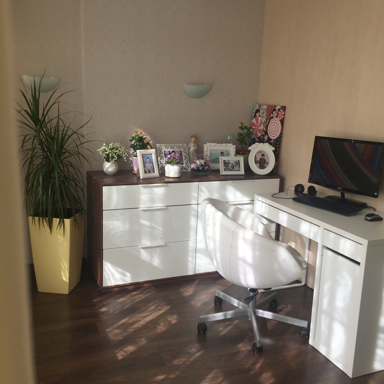 А еще я подумала, что круто было бы организовать уголок под названием "плита + компьютер", одной рукой работаешь, другой рукой оладушки переворачиваешь :)