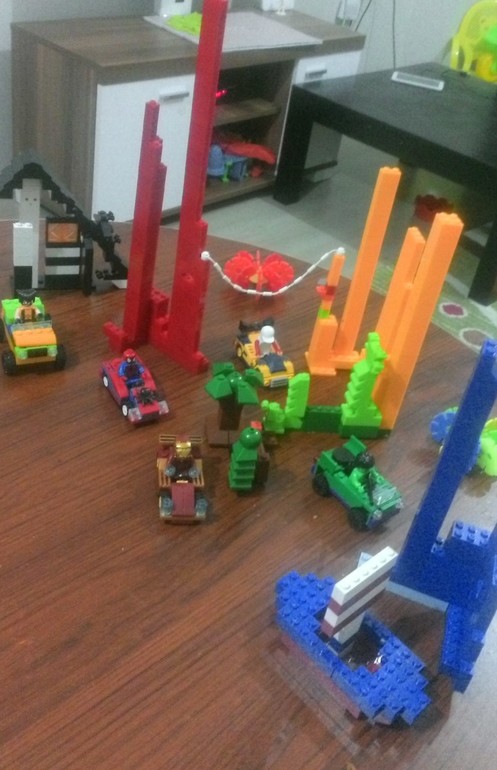 Эмир собирает мини машинки по инструкции, а я строю "небоскребы" . Так и расслабляемся ввечерами :)