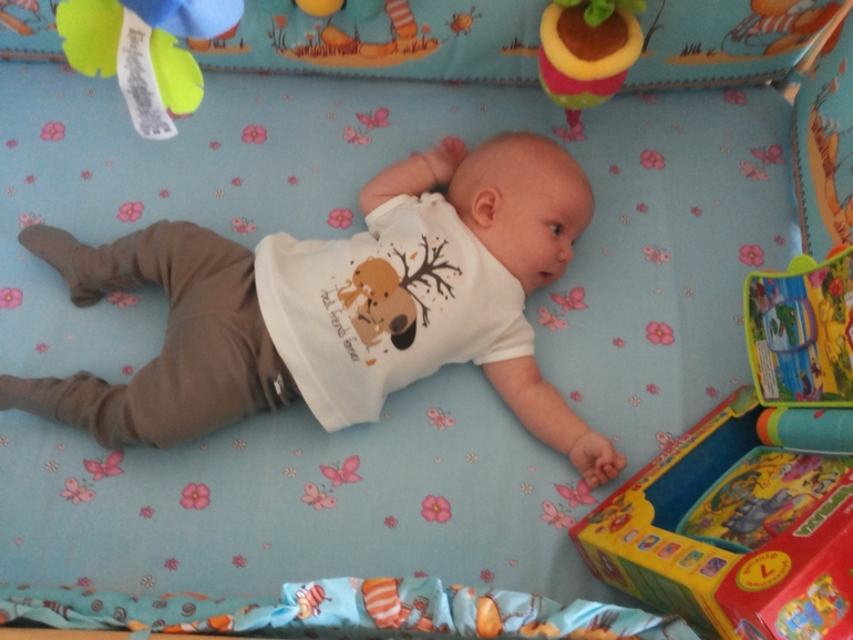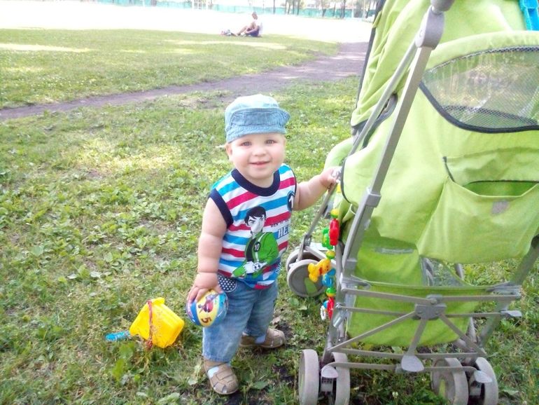 Никита умеет, открывать книжки, немного порвал, но у него доступ только к старым. Посылать воздушный поцелуй, прислоняет правда вместо губ к щеке ручку. Плавает в ванной, задерживает задерживает дыхание. Стоит без поддержки, делает три-пять шагов без рук, ходит за одну ручку. Вставляет в пирамидку два три колечка, больше не хочет. Вставляет в сортер фигурки, не всегда правильно) отличает цвета, зеленый шарик кладет в зеленый контейнер, синий в синий контейнер, например. Складывает маленькое в большое... Затыкает ванную пробкой, приклеивает мини-коврики в ванной.