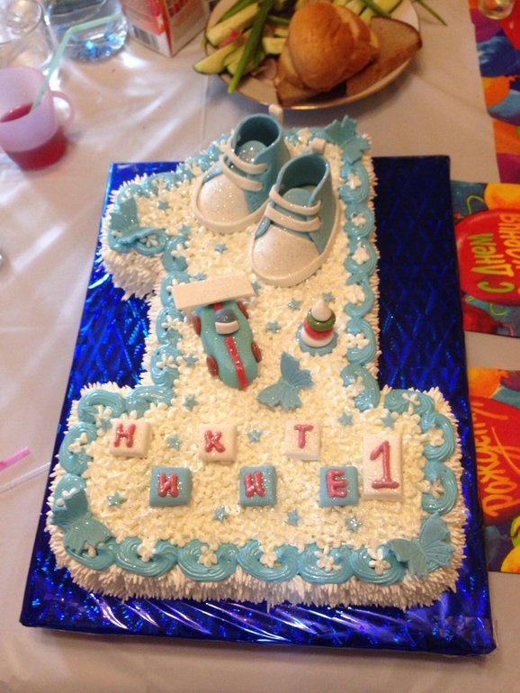 Вот и прошел первый год нашего сыночка Никиты. Вес 12,5 рост 76, размер ноги 20. Сделаны первые пять шагов, цель бабушка, моя мама. На сегодня шесть зубов, три вверху и три внизу. Под катом как отметили др и умелки