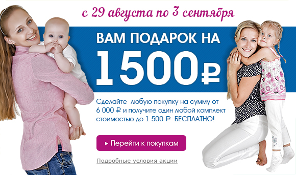Дорогие мамы и папы, бабушки и дедушки! В честь приближающегося Дня знаний мы приготовили для вас подарки при заказе от 6000 рублей! Акция действительна до 3 сентября включительно!