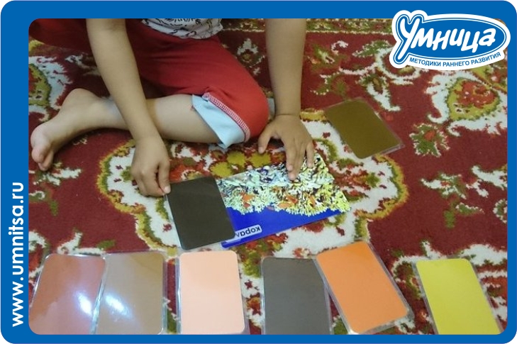 Карточки с оттенками цветов помогают через цветовосприятие познакомить малыша с миром творчества, развить художественный вкус. Посмотрите, как маленькая умничка Катюша (6 мес.) уже легко различает цвета