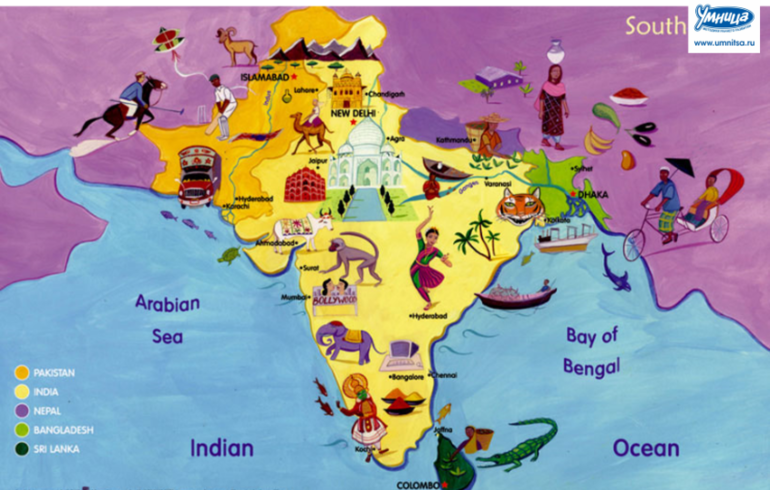 1. Предлагаем ребёнку отправиться в удивительную страну Индию. Ищем её на карте мира, атласе или на глобусе.