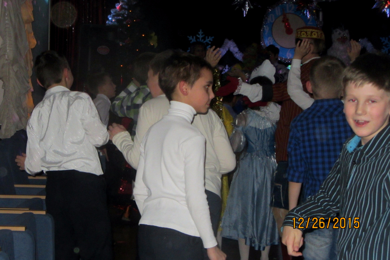 Наш класс до начала вечеринки: многие девочки были в НГ костюмах, а вот мальчишки пришли "по-пацански)