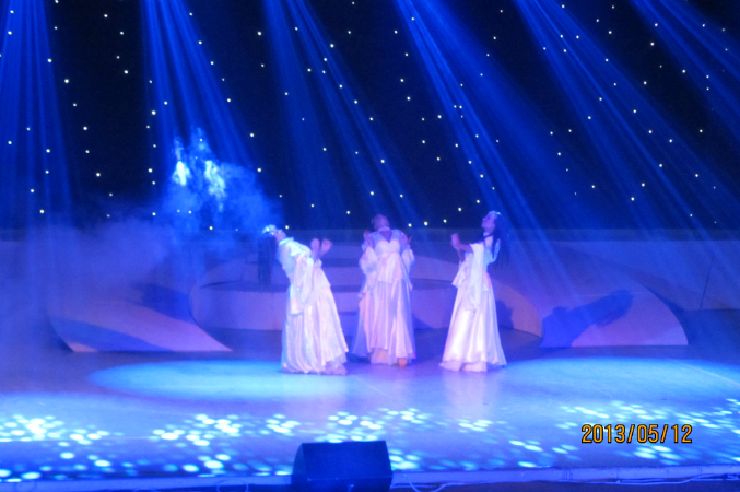 Ходили я с Колей и подруга с дочкой (мужья работали).Коли понравилось, но под конец устал (громкая музыка утомляет). В этот раз его больше всего впечатлил танец "Наргиза" с крыльями. На крыльях были светодиоды, а он у меня вообще большой любитель фаершоу )))
