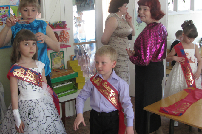 После оканчания торжественной части - Коля подбежал к воспитателям и расплакался - так ему не хочется прощаться с д/с