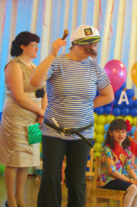 В роли капитана Врунгеля - наша первая воспитательница из ясельной группы - Варвара Сергеевна