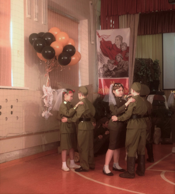 сегодня ходили в школу, наш класс, единственный из всей школы, готовил спектакль ко Дню Победы, были приглашены ветераны поселка (в котором находиться школа)... Готовили спектакль дети с родителями и классным руководителем на протяжении 3-х месяцев, на спектакль были затрачены деньги, когда все подсчитали, были удивлены (это колоссальная сумма для школьного спектакля) около 50-55 тысяч.... но... девочки... вот совсем не жалко этих денег... поздравление вышло на славу.... позже выложу видео (когда муж смонтирует), детки все старались, родители пели военные песни, не хуже чем профессиональные певцы, слезы так и катились с глаз.... Какие же все молодцы... пока что вот только парочка фотографий, а потом выложу и видео и фотографии с фотоаппарата, пока что только с телефона, извиняйте... но не поделиться не могу, пока еще эмоции и впечатления свежы.... все было так трогательно и запоминающе...