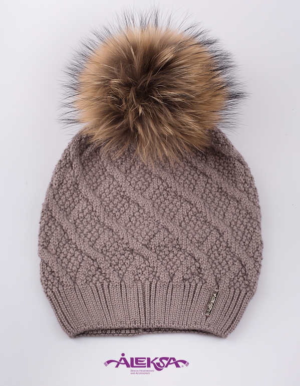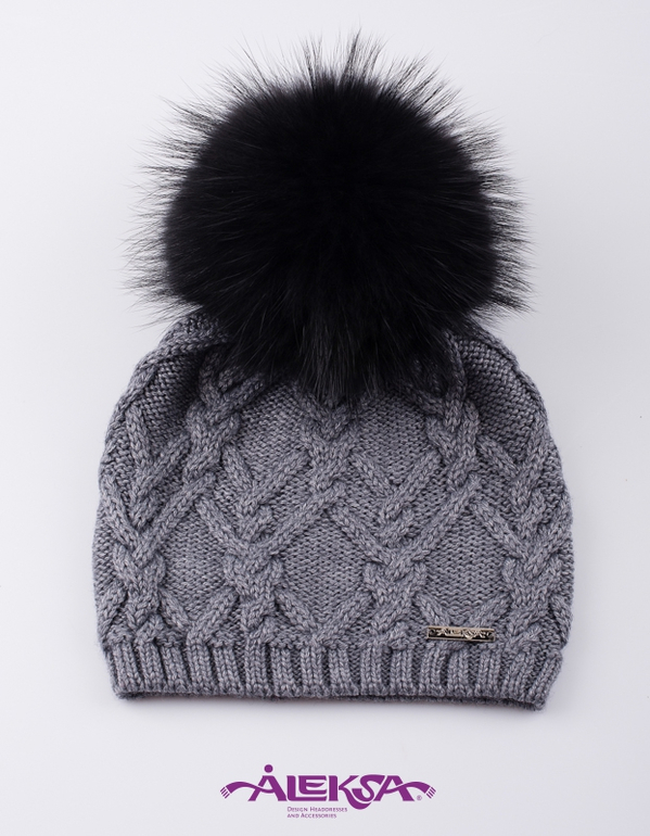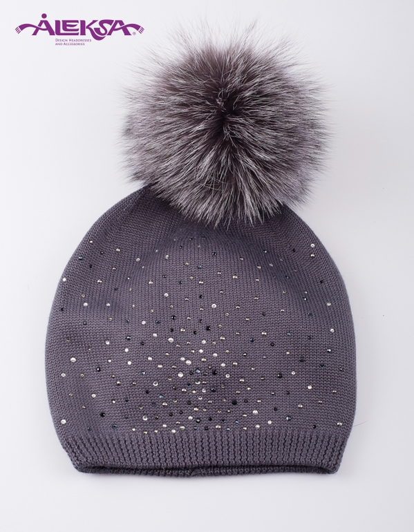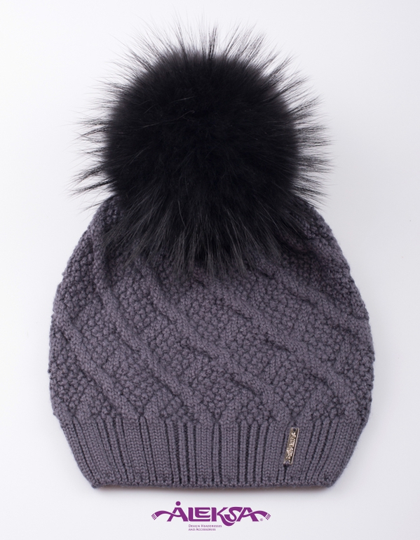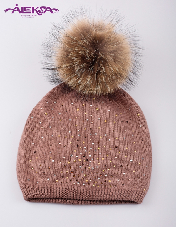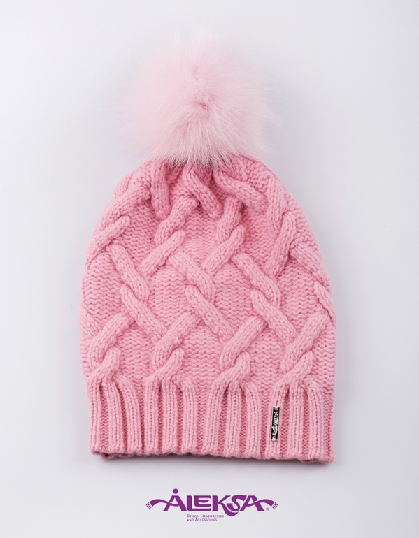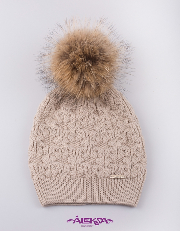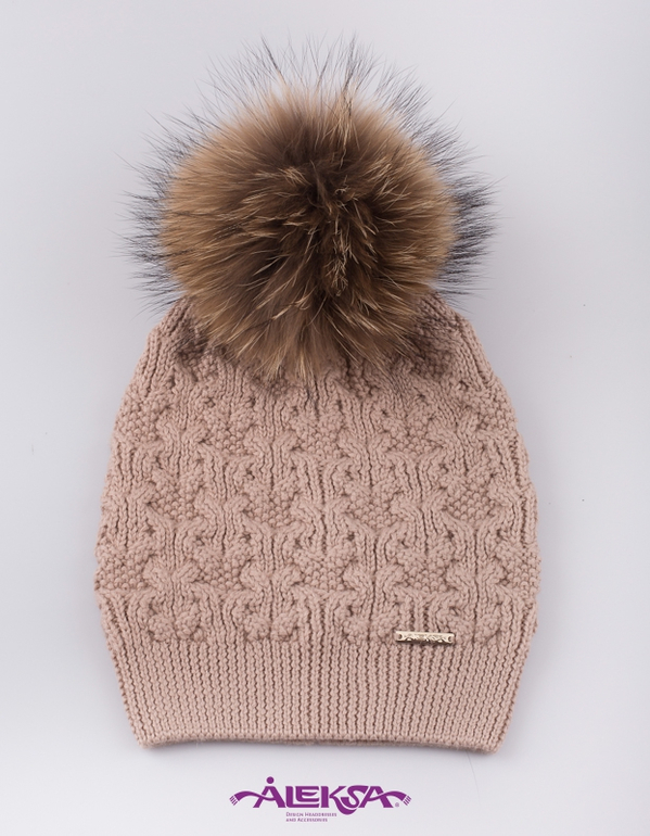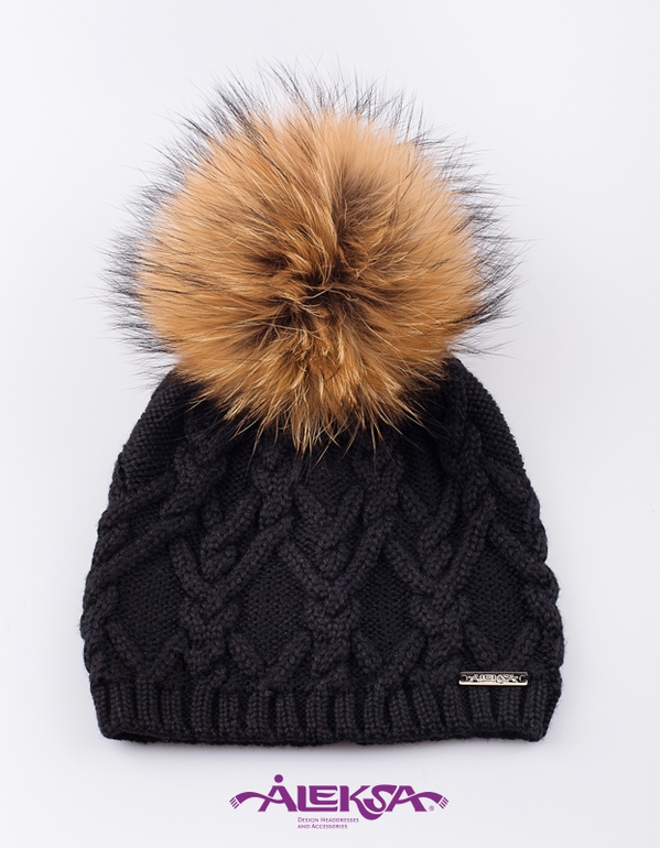 Шапка объемная одинарная с меховым помпоном, с напуском