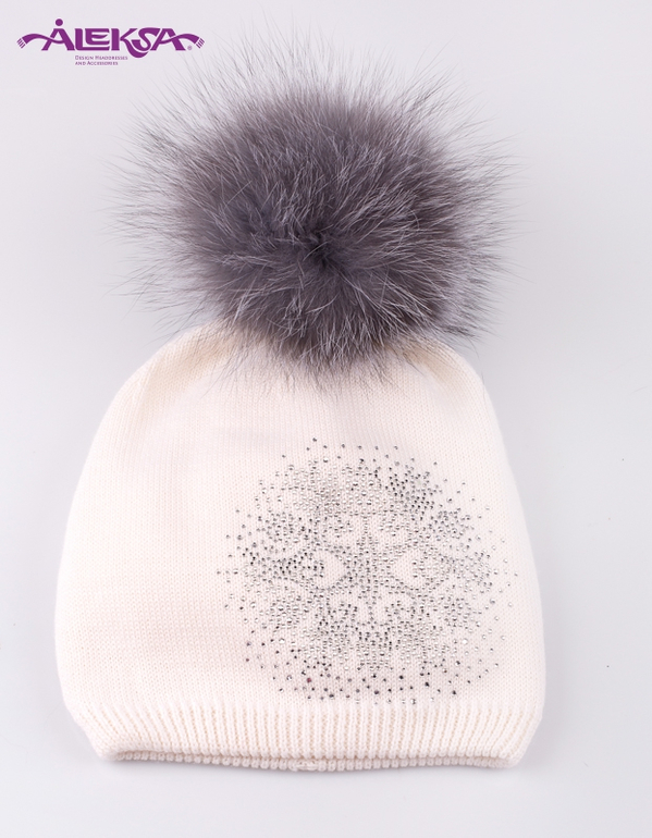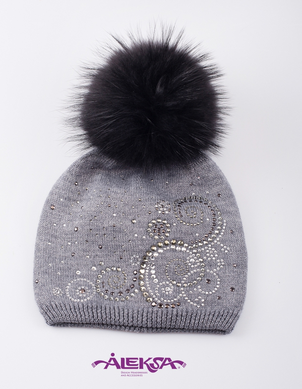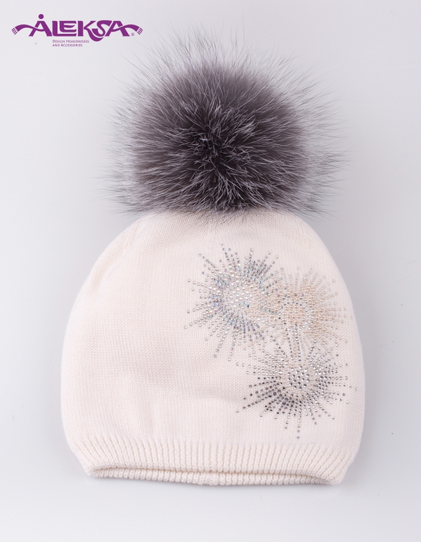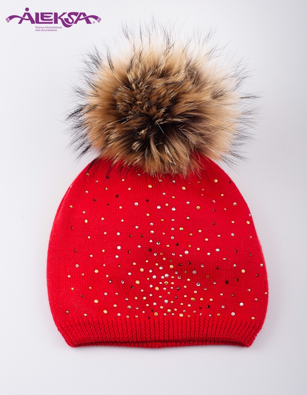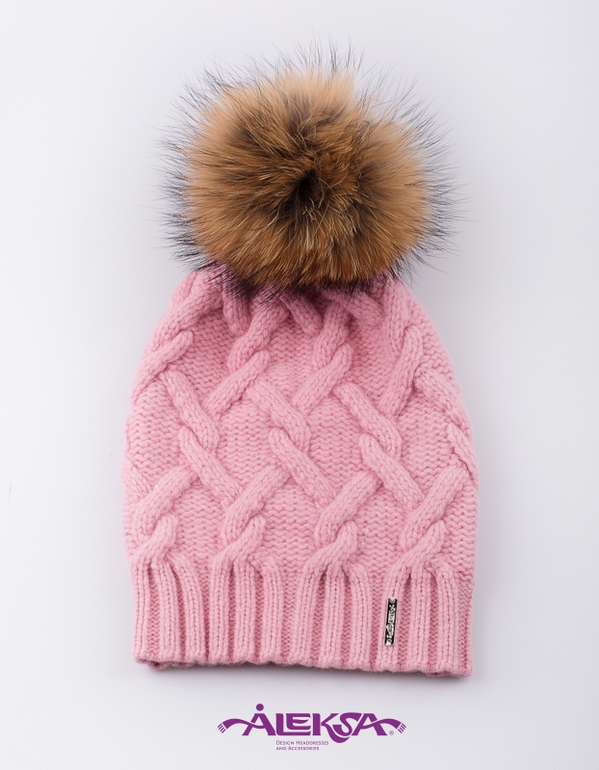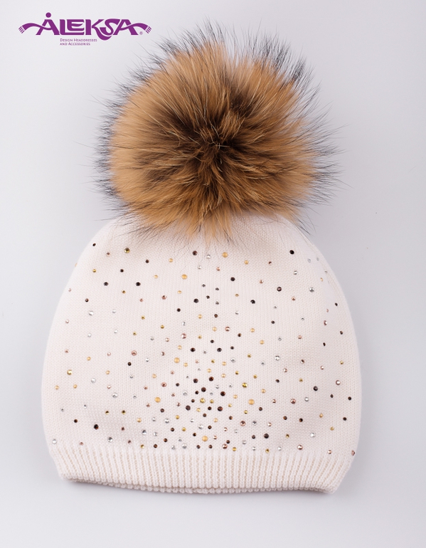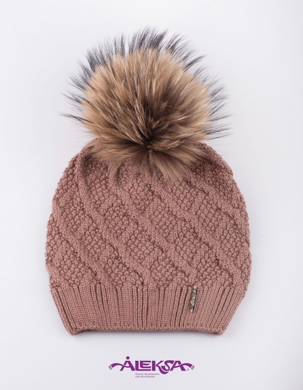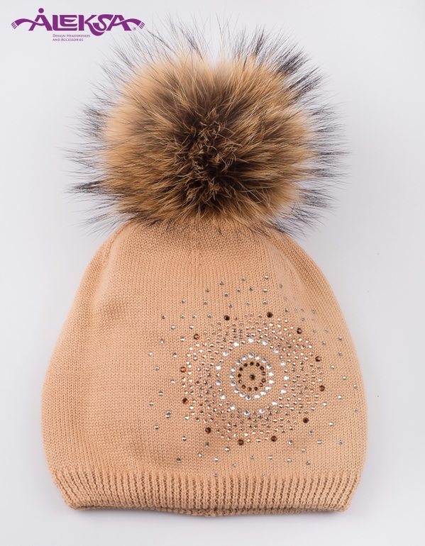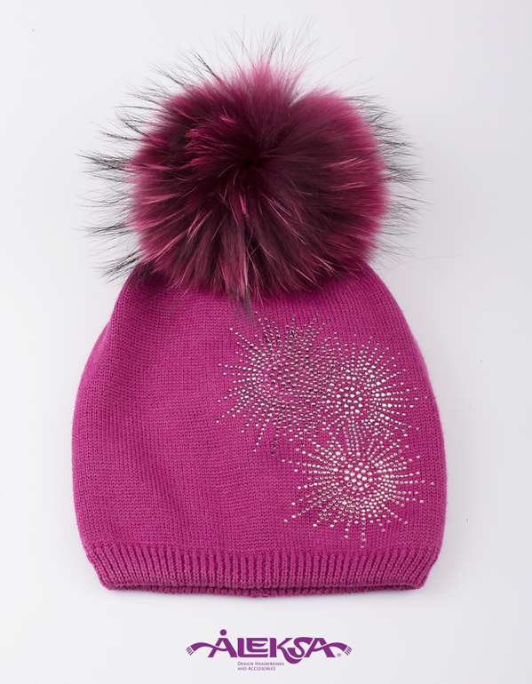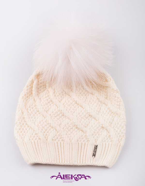 Шапка объемная одинарная с меховым помпоном, с напуском