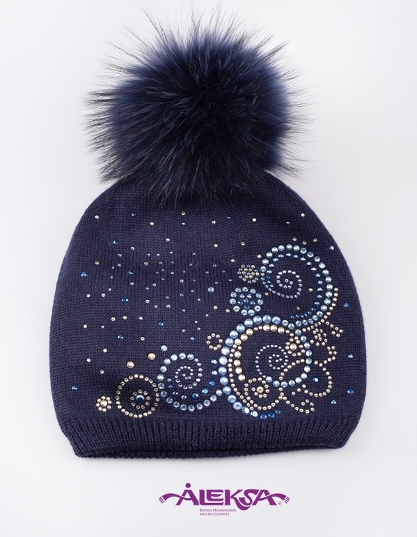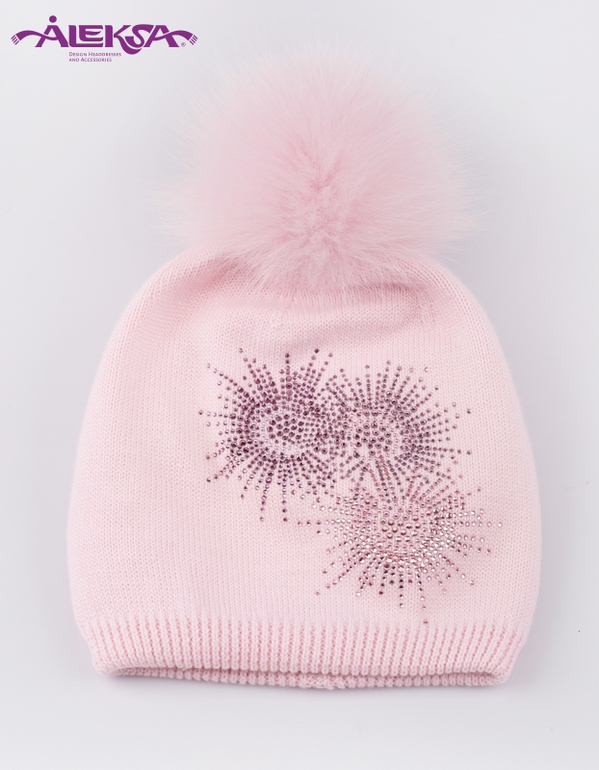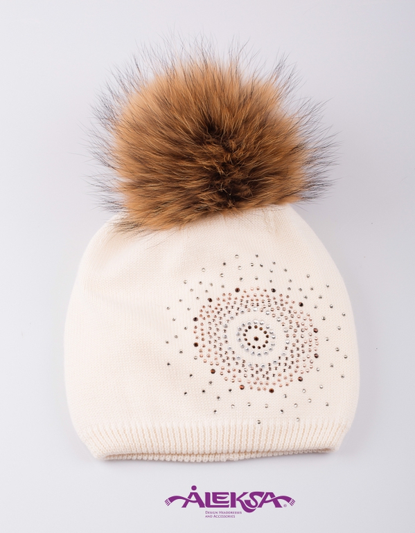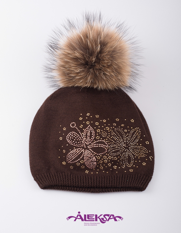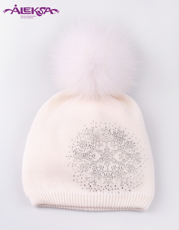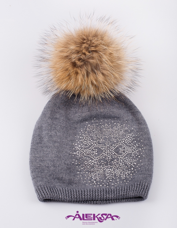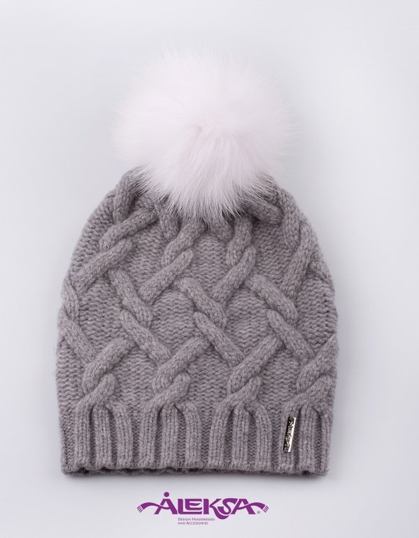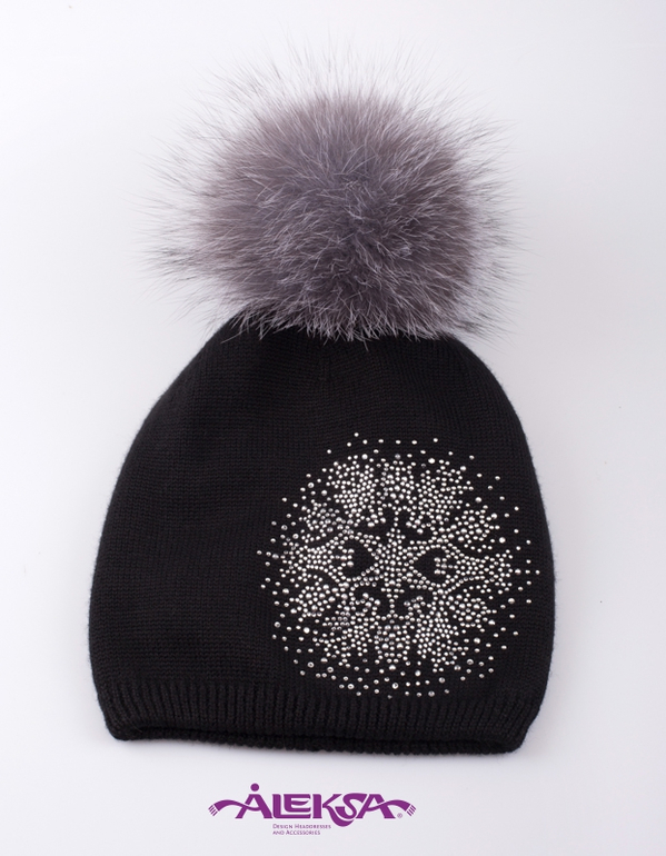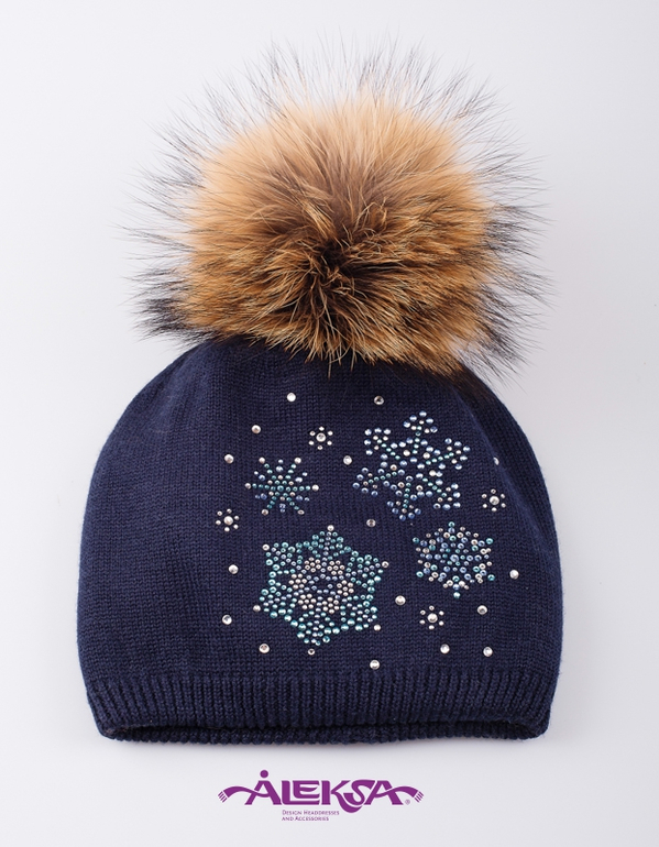 Шапка объемная одинарная с меховым помпоном, с напуском