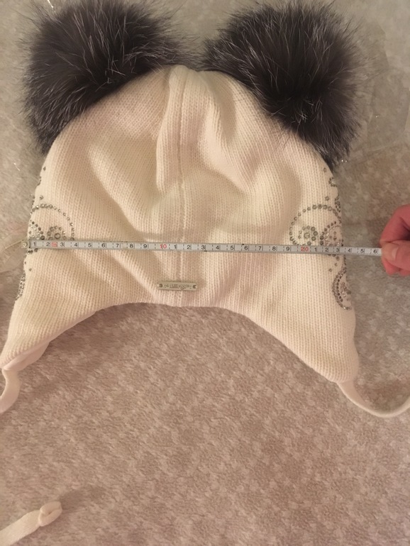 Шапочка очень понравилась, качественная, теплая, помпон пушистый. Заказывала самый маленький размер S (48-50), на нашу головку 49см шапка оказалась прилично велика, дома это было не так заметно, а на улице при повороте головы полностью открывались ушки, пришлось ушить, теперь сидит отлично. Это не испортило впечатление от шапки, поносим ее как минимум еще на следующий год ))