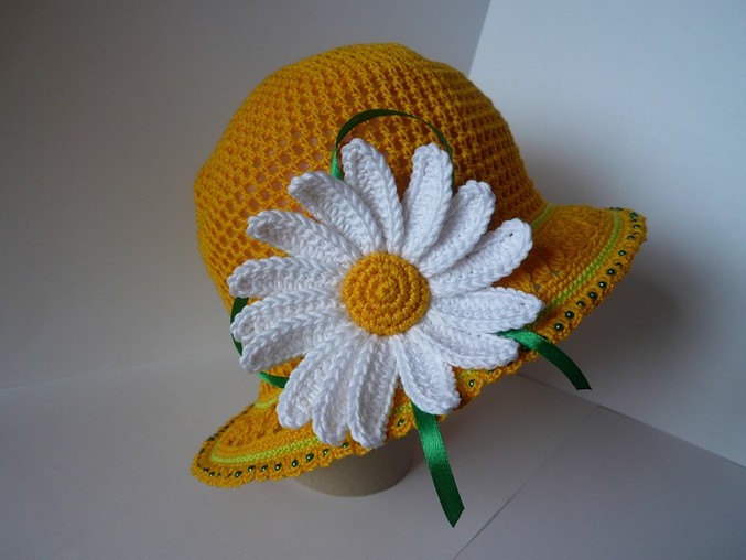 Летние шапочки-панамки из тонкого хлопка, украшены цветами. Удобны для любого возраста от совсем малышек до девочек постарше. На шапочках для маленьких сплошная вязка на ушках, можно сделать завязки.