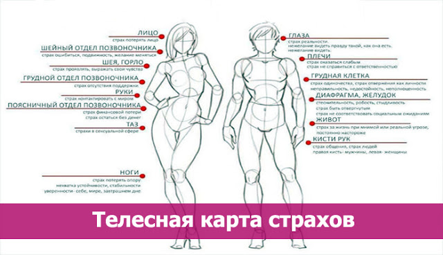 В том, как чувства расселяются по телу, есть закономерности. И мы Вам сейчас предлагаем немного поисследовать собственные страхи - где в Вашем теле они живут и с чем это связано.