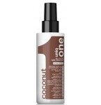 Uniq One Coconut обладает многофункциональным воздействием: его формула восстанавливает поврежденные и сухие волосы, придает блеск и шелковистость тусклым волосам, смягчает их, защищает от воздействия солнечного излучения, борется с секущимися кончиками, обладает функцией термозащиты при укладке феном, утюжком или щипцами. Также маска-спрей Уник ван с кокосом облегчает выпрямление и расчесывание волос, усиливает объем и надежно фиксирует укладку.
