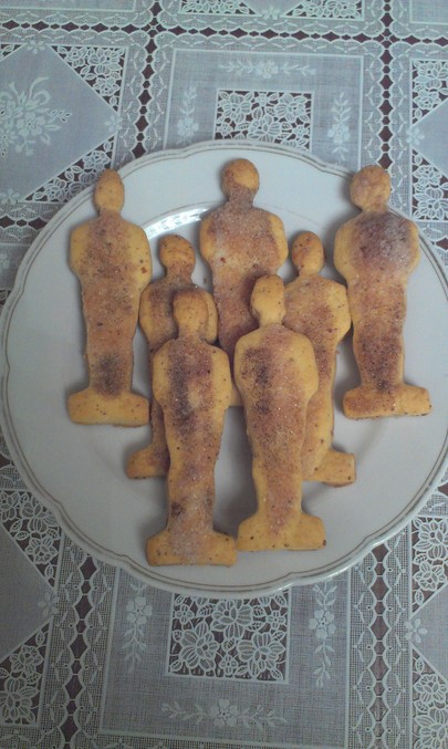 Мы настолько загорелись идеей оформить все в одном стиле, что даже испекли печеньки в виде Оскаров и звездочек! Тут мы опять озадачили папу, теперь уже изготовлением формочек для печенья. И вот что у нас получилось!