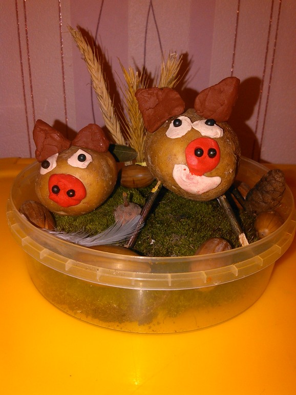 Я своих принципов придерживаюсь и письками ни с кем мериться не собираюсь , поэтому поделку ребёнок делала сама! Я только мох в банку упихала, ну и картинки в инете показала, чтоб Ксю выбрала что делать будет.