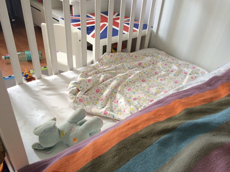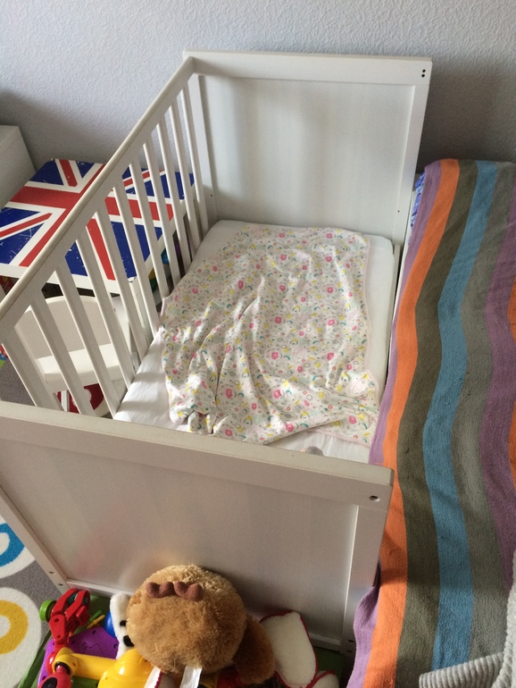 Последние пару-тройку месяцев Василиса практиковала переваливание из кровати "мешком", этакий побег на волю. Недавно это явление приняло такой оборот, что пришлось рейки с одной стороны кровати вообще убрать - 1,1 малой. Вот и ответ на мой вопрос - когда это делается...пока живём в однушке, и все-все у нас вплотную, получается вот что...