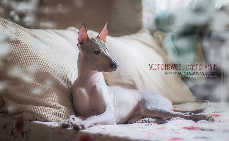 Веста породы Ксололитцкуинтли или Мексиканская Голая собака стандартного размера)