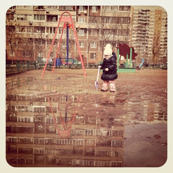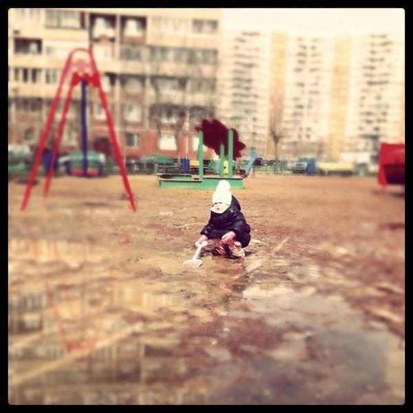 А у нас сегодня было развлечением бегать по лужам и топтать грязь... Домой пришли мокрые, грязные, уставшие, но довоооольные ))))