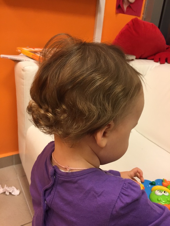 Вчера мы первый раз посетили детскую парикмахерскую. У Варюши уже так отросли волосы, что с этим нужно было что-то делать- или сооружать "фонтанчик" на макушке, или стричь. Решили стричь.